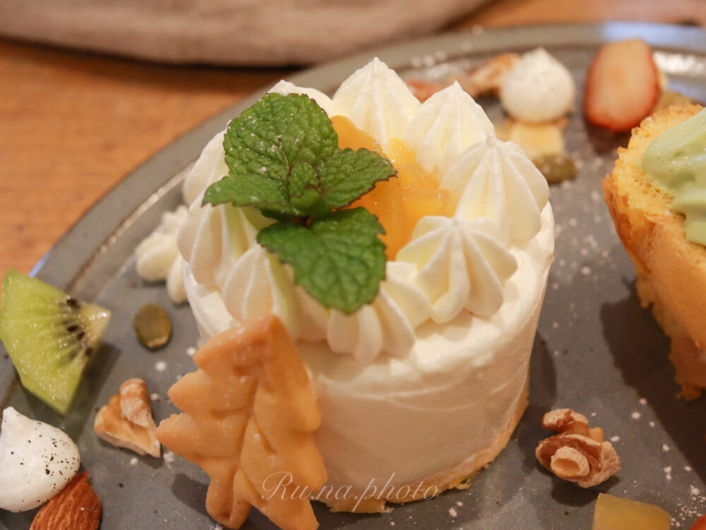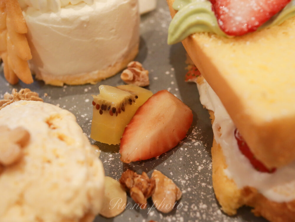 苺のシフォンサンド、柚子のベイクドレアチーズケーキ、白桃の手作りアイス。